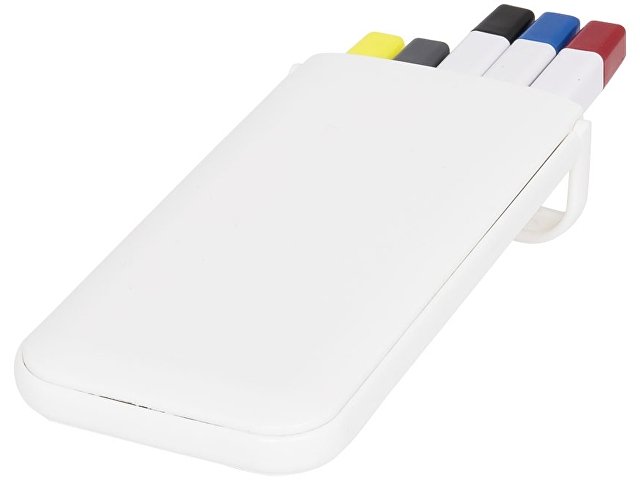 Набор. Этот набор содержит три цветные шариковые ручки, карандаш и маркер в удобном белом пластиковом футляре. Пластик. Тампопечать (1 цвет (белые изделия)) на данный товар рассчитывается индивидуально. При расчете стоимости нанесения в неё будет включена настройка оборудования в размере 2900 рублей на весь тираж.
