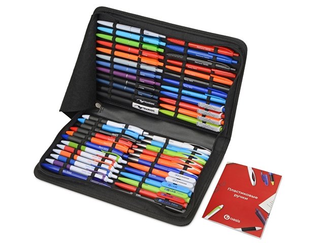 Промо-сет пластиковых ручек от Oasis - лучшее средство для продвижения своего бренда. В сет входят 12 популярных моделей в различных цветах на ваш выбор. На каждой ручке выполнено нанесение в виде артикула и названия для удобного ее поиска на сайте. Сам сет представлен небольшой кожаной папкой на 48 ручек, где каждая ручка зафиксирована двумя креплениями, откуда её легко можно доставать.