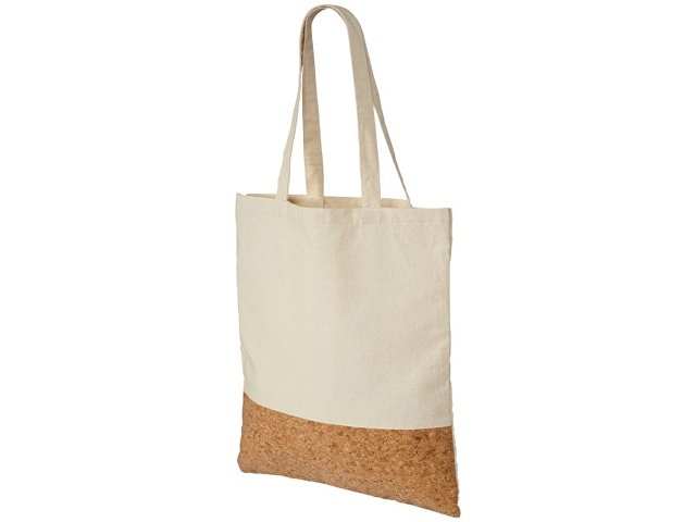 Сумка из хлопка и пробки. Сумка с открытым основным отделением. Спереди внизу панель из 100% натуральной пробки. Высота ручек 26 см. Хлопок 175 г/м2 и пробковая панель. Трафаретная печать (1 цвет (цветные изделия)) на данный товар рассчитывается индивидуально. При расчете стоимости нанесения в неё будет включена настройка оборудования в размере 6700 рублей на весь тираж.