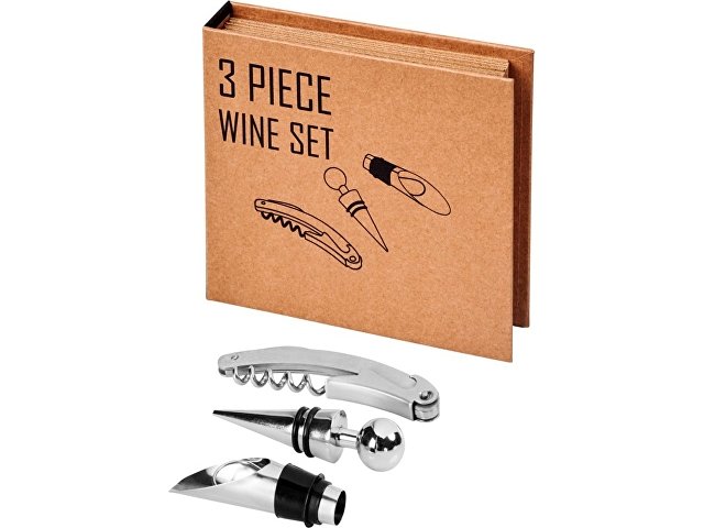 Набор для вина Reze из 3 предметов. Этот комплект включает в себя винную пробку, воронку и штопор. Предоставляется в подарочной коробке Avenue. Картон, нержавеющая сталь и дерево. Гравировка (оптоволоконный лазер) (Без чернения) на данный товар рассчитывается индивидуально. При расчете стоимости нанесения в неё будет включена настройка оборудования в размере 900 рублей на весь тираж.