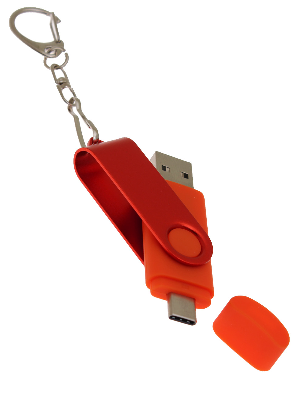 Флеш-накопитель поворотный механизм, c дополнительным разъемом TypeC, с одноцветным металлическим клипом. Пластиковый корпус.