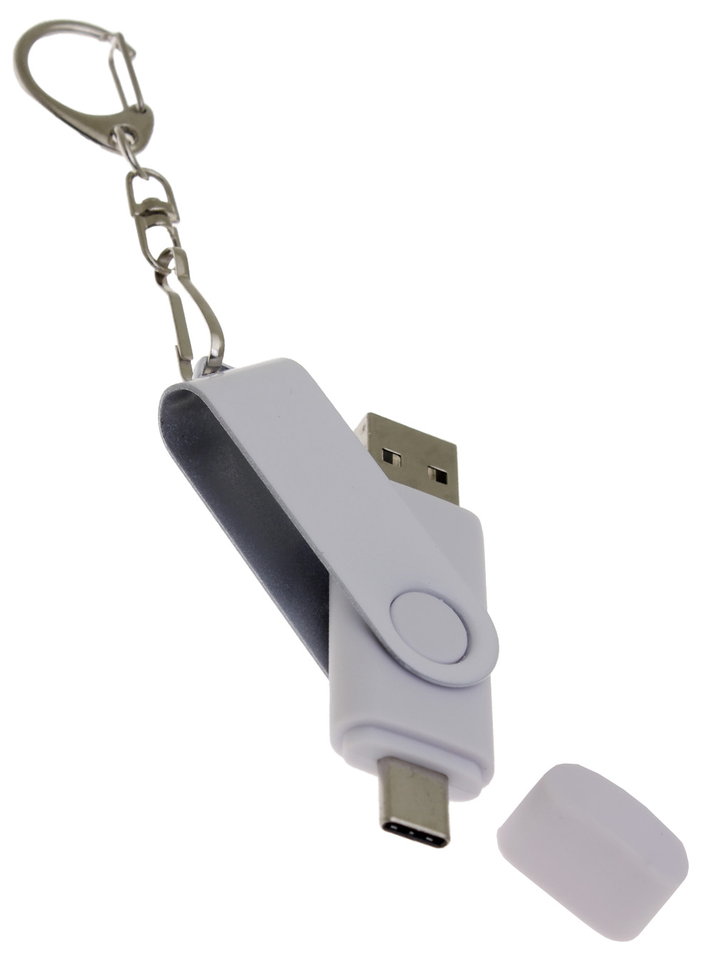 Флеш-накопитель поворотный механизм, c дополнительным разъемом TypeC, с одноцветным металлическим клипом. Пластиковый корпус.