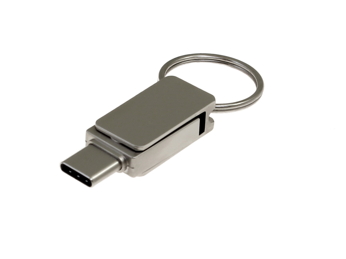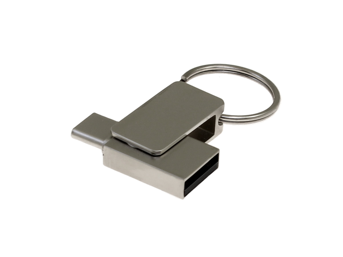 Быстрая легкая компактная металлическая флешка брелок с разъемами USB Type-A и USB Type-C.